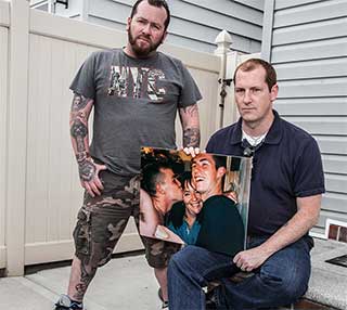 Christian Lillis (sitting) and his brother Liam outside their family home in Brooklyn, N.Y., with a picture of their mother Peggy. She died when an antibiotic prescribed after a routine root canal killed off “good” bacteria in her stomach, allowing a “bad” bacteria, C. difficile, to spread throughout her body. The family responded to the tragedy by creating the Peggy Lillis Memorial Foundation.